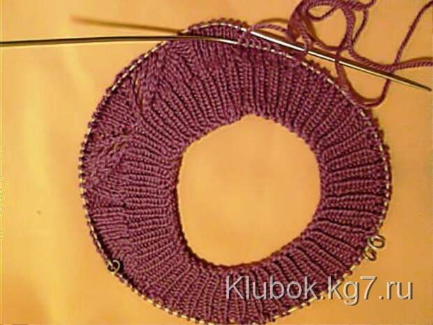 Переносим петли переда и спинки на круговые спицы. Петли рукавов откладываем на время.