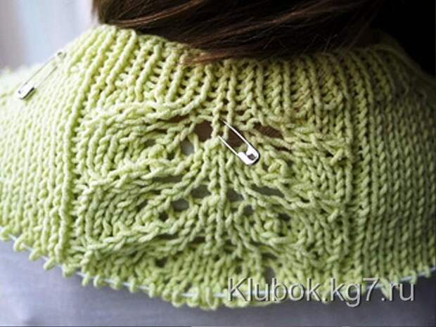 Набрать нужно 72 петли и вязать резинкой 1*1 7 рядов, далее продолжая резинку вязать укороченными рядами ( связать 62 петли, повернуть работу, сделать накид на правую спицу, вязать 52 петли, повернуть, накид на правую спицу, вязать 42 петли, повернуть, накид, вязать 32 петли, повернуть накид; (теперь опять вяжем по кругу)продолжаем вязать провязывая накды вместе со следующей за ним петлей). Связали до конца ряда. Ворот готов.